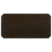 Add a timeless touch to your living room with this three-piece coffee table set. Featuring a coffee table and two side tables, each piece showcases a rich dark brown finish for a classic appeal. The smooth tops with notched corners add charm while providing functionality. Built from rubberwood, engineered wood, and Okume veneer, these tables are durable and stylish. The slim, tapered legs complement the minimalist design, making this occasional table set a perfect choice for compact spaces. Key Features: • Three-piece coffee table set includes one coffee table and two side tables • Dark brown finish adds warmth and a classic aesthetic to living spaces • Smooth tabletops with notched corners offer a soft, refined look • Slim, straight legs with subtle tapering provide stability and style • Constructed from rubberwood, engineered wood, and Okume veneer • Compact design ideal for small or cozy living room arrangements