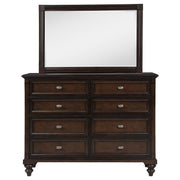 This dresser and mirror set combines functionality with classic elegance, making it a refined addition to any bedroom. The eight-drawer dresser provides ample storage, with dark brown felt-lined top drawers for added luxury, while the gunmetal hardware adds a sleek, modern touch. The dark oak finish highlights the natural beauty of the wood, bringing warmth and depth to your space. The accompanying mirror reflects light and expands the room visually, making your bedroom feel open and inviting. Crafted from poplar and oak veneers, this set is both durable and stylish. Key Features: • Dresser and mirror set with elegant, timeless design • Dark oak finish enhances the rich wood tones • Smooth-glide drawers with felt lining in the top drawers • Gunmetal hardware adds a modern contrast • Poplar and oak veneer construction for durability and longevity