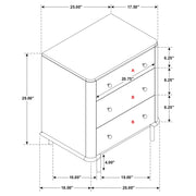Create a relaxing atmosphere with the clean lines and neutral, wire-brushed, sand wash finish of this coastal bedroom set. A grey fabric padded headrest and footrest along with aged brass hardware throughout each piece offer lovely modern glam accents. Matching storage pieces and round framed mirror complete the set, offering thoughtful touches like felt-lined top drawers and a built-in tray.