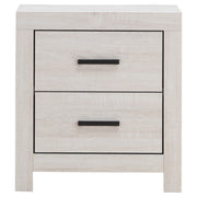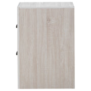 This two-drawer nightstand brings modern style and practical storage to the bedside. Its clean-lined frame complements contemporary spaces, while two spacious drawers provide room for nighttime essentials. Dark bronze handles contrast beautifully against the engineered wood construction and durable laminate veneer. Designed for everyday use, this nightstand offers both style and function in a compact footprint. Key Features: • Two-drawer nightstand with a sleek and modern silhouette • Barrel oak finish enhances the warm, natural wood grain look • Spacious drawers provide storage for bedside essentials and more • Sturdy engineered wood construction ensures lasting durability • Matte dark bronze handles offer a stylish contrast to the finish • Durable laminate veneer resists scratches, stains, and wear