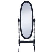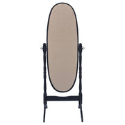 Traditional elegance with a functional twist. This cheval mirror delivers a charming look for a bedroom or dressing space. Full-length mirrored glass with a swivel base offers various viewing perspectives. A selection of lovely finishes blends beautifully in practically every setting. Charming curved legs adds a fresh, stylish look. Key Features: • Traditional oval cheval standing mirror feels like an heirloom piece • Oval wood frame on stand with turned posts • Clear mirror surface • Available in merlot, honey black, and white • Rubberwood construction