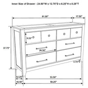 Elevate your space with this bedroom set blending craftsman character and modern utility. A vineyard oak finish enhances the oak grain texture across rubberwood and engineered wood veneer. Antique nickel metal knob and pull handles lend a refined touch to the clean, framed silhouettes. Case pieces glide with ease on heavy-duty metal ball bearing extension slides, while the platform bed features a framed headboard and two footboard drawers. Medium density fiberboard (Mdf) platform panels offer durable, foundation-free mattress support. Key Features: • Vineyard oak finish with embossed oak grain veneer creates natural warmth and depth • Platform storage bed features two drawers and medium density fiberboard (Mdf) panels for firm support without a foundation • Case pieces constructed from rubberwood and engineered wood veneer • Heavy-duty metal ball bearing drawer extension slides ensure smooth and lasting performance • Antique nickel metal knob and pull handles add contrast and a refined traditional touch • Framed silhouettes offer a clean, versatile foundation for any bedroom