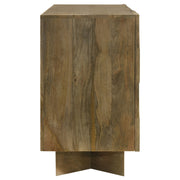 Enhance your dining room with a modern flair using our eco-friendly mango wood dining server. This server showcases a captivating chevron pattern on the door front, adding a touch of character and style to your space. With two adjustable shelves, it provides ample storage for your dining essentials, allowing you to organize and display items with ease. Key Features: • Enhance your dining room with a modern flair using our eco-friendly mango wood dining server • This server showcases a captivating chevron pattern on the door front, adding a touch of character and style to your space • Two adjustable shelves provide ample storage for your dining essentials, allowing you to organize and display items with ease • The mango wood construction is durable and eco-friendly, making it a great choice for any home • The sleek design and modern finish make this server a great addition to any dining room
