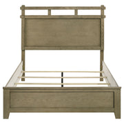 Blending clean lines with warm character, this panel bed delivers timeless style for transitional spaces. Crafted from rubberwood with engineered wood veneer embossed in an oak grain texture, its frame showcases a refined vineyard oak finish. A distinctive open-slat headboard design adds depth and craftsmanship to the silhouette. Designed for use with a foundation, this bed is a sturdy and stylish centerpiece for the modern bedroom. Key Features: • Queen bed with a bold panel design and open-slat headboard framing • Constructed from rubberwood and engineered wood veneer with oak grain embossing • Vineyard oak finish adds warmth and dimension to the bedroom setting • Requires a standard foundation to support your preferred mattress setup • Linear profile complements transitional, rustic, or contemporary interiors • Durable frame offers long-lasting support and elevated design appeal