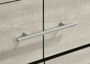This contemporary bedroom set blends cool, modern style with rustic charm. Its Yin & Yang design pairs a rustic cream finish over engineered paper veneer with a sleek, floating bed. The headboard's padded, cream bouclé fabric adds softness, while polished nickel hardware brings shine. Crafted from rubberwood and engineered wood, drawers feature English dovetail joinery and Center metal glide for durability. This set is chic, stylish, and full of unique details. Key Features: • Contemporary rustic cream bedroom set with "floating" bed design • Cream bouclé fabric headboard adds softness to clean lines • Polished nickel extra-wide metal pull handles for a sleek finish • Built with rubberwood, engineered wood, and foam • Drawers crafted with English dovetail joinery and Center metal glides • Rustic cream finish with rough-sawn white-washed veneer for unique character