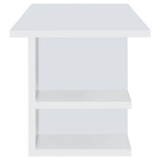 Enhance your workspace with this modern writing desk, featuring a sleek white finish and a spacious design for maximum functionality. The clean-lined silhouette offers a contemporary touch, while four open shelves provide ample storage for books, office supplies, or decorative items. The wide tabletop surface accommodates a large computer setup, ensuring a comfortable and efficient work environment. Designed for versatility, the open leg space allows for easy chair placement. Crafted from durable engineered wood and melamine veneer, this desk is both stylish and built to last. Key Features: • Sleek white writing desk with a spacious tabletop for a modern office setup • Four open shelves provide ample storage for books, supplies, and décor • Minimalist design blends seamlessly into contemporary and home office spaces • Sturdy construction with engineered wood and melamine veneer for durability • Open leg space offers comfort and easy chair placement • Perfect for home offices, study areas, or creative workspaces