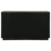 Add a stylish platform for decor and ample storage for clothing with a modern six-drawer dresser. Crafted with a cool ash brown wood grain finish, the dresser features decorative drawer fronts that turn it into a true show piece in your bedroom. Drawer fronts are subtly shaped and paired with vertical fluting that creates chic depth in an artful presentation. Thick bar pulls are turned vertical, echoing the elegant lines of the piece. Its wide top is just right for a jewelry box and decor, offering a personalized ambiance to your bedroom. Key Features: • Six roomy drawers in a modern wooden dresser create ample storage for clothing, linens, and more • An elegant cool ash brown wood finish is complemented with deep brown-toned hardware • Vertical fluting lends texture and dimensionality that creates sophisticated artistry • Vertical drawer pulls add visual interest and dimensionality to a shapely drawer front design • Drawers feature metal extension glides for smooth, seamless performance