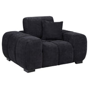 Transform your reading nook or living area into a haven of comfort with this mid-century inspired chair. Its wide, rounded arms and plush, tufted waterfall seat invite you to relax, while soft, neutral upholstery enhances its cozy appeal. A durable frame ensures long-lasting support, and reversible back cushion offer adjustable comfort. This versatile chair captures a refined yet inviting look, seamlessly blending style with everyday usability. Key Features: • Accent chair in camel fabric features sculptural curves and deep vertical channel tufting • Wide seat with plush waterfall cushioning offers bold form and full-body comfort • Reversible back cushion and accent pillow provide flexibility and cozy support • Fully upholstered from base to back for a soft, cohesive visual appearance • Padded with layered foam over a durable wood frame for lasting everyday use • Perfect as a statement seat in living rooms, bedrooms, or modern lounge spaces