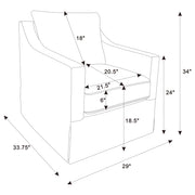 This swivel accent chair complements living room décor with its neutral fabric and streamlined silhouette. Perfect as lounge seating or an occasional chair, it offers a gentle, 360-degree swivel for relaxed conversation or quiet reading. Its plush seat and transitional flair enhance the comfort and style of your home, blending subtle elegance with everyday versatility. Key Features: • Swivel accent chair designed for flexible seating • Soft beige fabric delivering a neutral, cozy feel • Plush cushioning supports long-lasting comfort • 360-degree swivel base for effortless movement • Transitional style blends into various interiors • Ideal for reading nooks, living rooms, or cozy dens