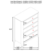 Add stylish storage in a compact footprint with this transitional five-drawer chest. Perfect for the bedroom, it boasts a rich walnut wood veneer that adds warmth to the elegance of natural grain patterns. Fingertip pulls are gently curved, creating texture and dimension for the front of the case. The chest includes rounded corners and decorative feet, adding fresh style to your bedroom or walk-in closet. Add a jewelry box or framed photo to the top to bring personality and stylish flair. Key Features: • Enhance your bedroom with the handsome profile and storage of a transitional five-drawer chest • Chest features rounded corners and gently curved fingertip pulls for easy operation • Walnut wood veneer lends warmth and creates a touch of texture with natural grain patterns • Top drawer is complete with dark brown felt lining, offering easy protection for delicate items • Drawers feature cedar lining that helps to protect against pests and provides excellent quality