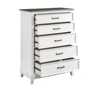 Exuding the aesthetic of casual country living, the Chesterton Collection’s classic lines create a look that perfectly captures your preference for farmhouse design. The two-tone finish of the collection is a warm contrast of dark brown and antique white. The knob and bar hardware that fronts the drawers of the dresser, nightstand and chest provide distinct complementing contrast to the collection’s finish. Providing modern functionality to the nightstand is the back-mounted USB and power receptacles, allowing for convenient access to your electronic devices as they charge.