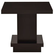 This square end table combines modern design with functional appeal, making it a versatile addition to any space. Constructed from engineered wood and finished with a scratch-resistant laminate veneer, it features a sleek cappuccino finish that exudes contemporary elegance. The bold, tiered silhouette creates a striking look while providing stability. Perfect as an accent table, it offers a spacious surface for decor or essentials, enhancing your living room's overall style. Key Features: • Square end table showcases a clean, bold geometric design • Cappuccino finish adds a sleek and contemporary touch • Durable laminate veneer resists scratches for lasting beauty • Compact tabletop offers space for essentials or decor accents • Engineered wood construction ensures strength and durability • Modern tiered silhouette enhances its visual appeal