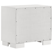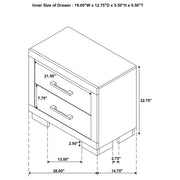 Clean lines and modern simplicity define this two-drawer nightstand, offering both style and practical storage. Each smooth-gliding drawer is felt-lined to protect delicate items, while sleek bar pulls lend a refined, contemporary accent. Constructed from durable wood and engineered materials, its sturdy form ensures everyday reliability. Ideal for bedside use, this nightstand blends functional design with a crisp, minimalist aesthetic that complements any bedroom décor._x005F_x000D_ Key Features: • Cool two-drawer nightstand with crisp geometric silhouette and clean form • Bright snow white finish delivers a fresh, contemporary visual presence • Felt-lined top drawer safeguards delicate accessories and fine jewelry • Silver-tone bar pulls enhance the sleek, minimalist modern profile • Durable rubberwood and engineered wood provide strength and stability • Fully assembled design offers immediate, ready-to-use bedside storage