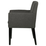 Enhance your casual dining room with these stylish mid-century-inspired dining chairs. Featuring cushioned arms wrapped in durable charcoal grey fabric, they offer both comfort and style. The sleek design and versatile color effortlessly complement any dining space, creating a cozy and inviting atmosphere. Elevate your dining experience with these chic and comfortable chairs. Key Features: • Upholstered in durable charcoal grey fabric for a stylish and comfortable look • Sleek mid-century-inspired design to enhance any dining space • Cushioned arms for added comfort • Versatile color to complement any décor • Easy to assemble for a quick and effortless upgrade to your dining room