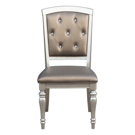 Celandine Collection by Homelegance Silver finish Wood frame Vinyl (faux leather) upholstered seat and back Crystal tufting back Sold in set of 2 ...